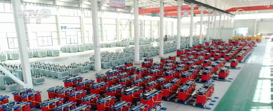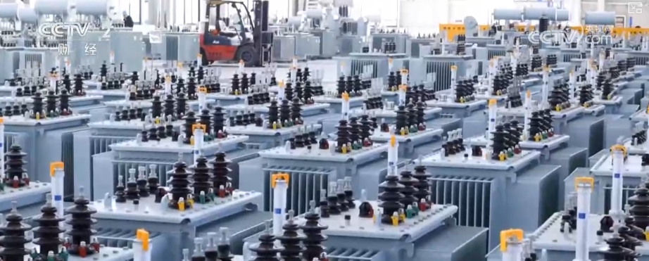 在广东佛山,一家电气设备企业生产线满负荷运转,仓库和停车场堆满了待交付的变压器产品。